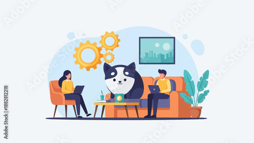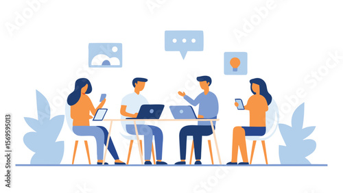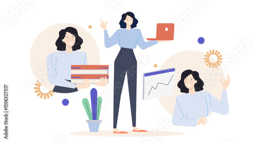 Happy successful business team micro male and female characters celebrating victory, business success, achievements, vector illustration. Teamwork concept for web banner, website page etc.
