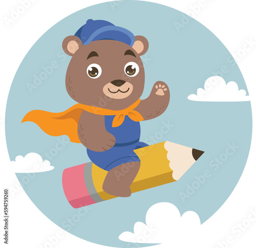 Teddy bear cute pilot animal cartoon vector icon. Funny character flying on aeroplane isolated on white background. Doodle design for postcard