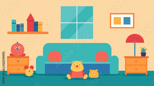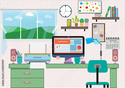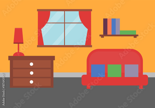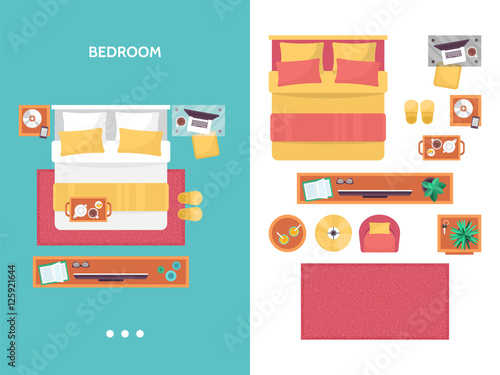 Teenager bedroom interior objects in flat style. Vector illustration. House room design elements and icons.
