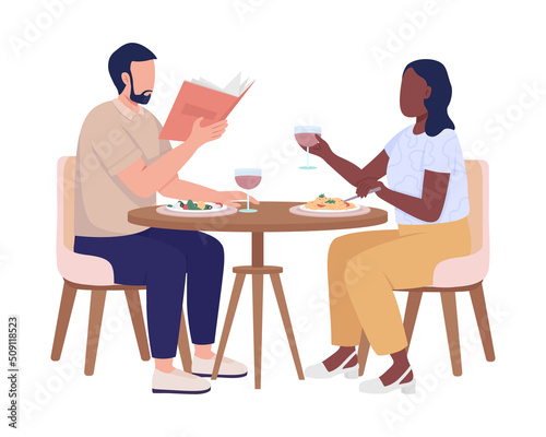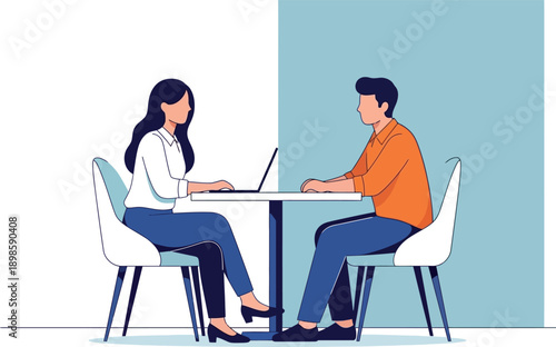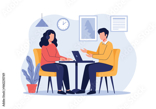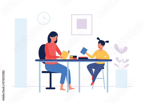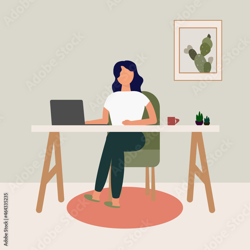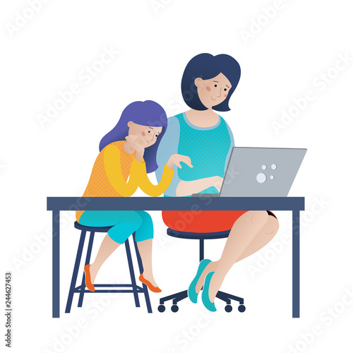 Teenager student enjoying homeschooling sitting at table front of computer having online lesson vector icon isolated on white background