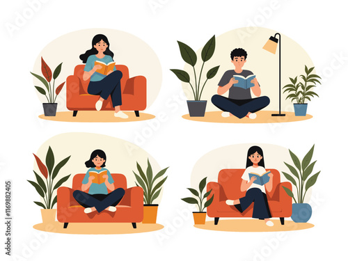 Teens playing board game sitting on the floor with cat, flat vector illustration. Happy young people friends playing cards and having fun. Home leisure activities.