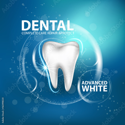 Teeth whitening vector medical education anatomy poster template. Professional teeth bleaching, cleaning, oral hygiene.