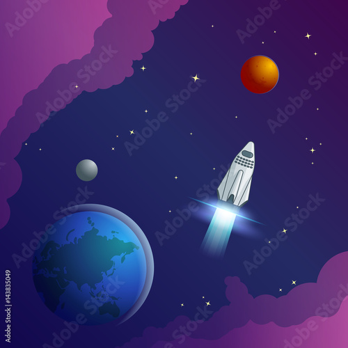 TON Telegram cryptocurrency flying to the moon like space rocket vector illustration. New cryptocurrency ico space wallpaper, poster.
