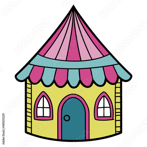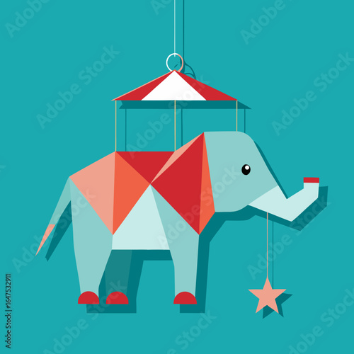 Tent for circus carnival event, party and park funfair vector. Fair or cirque striped marquee with flag on top and balloons isometric illustration isolated on white background
