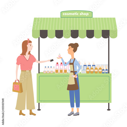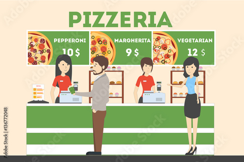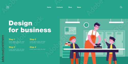 Vector illustration of scientists males demonstrating test results. Scientific laboratory interior, equipment and lab glassware. Flat style design.