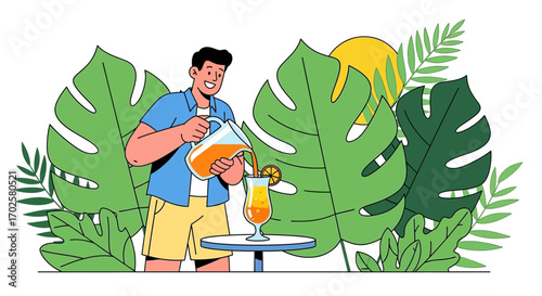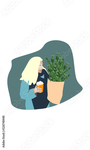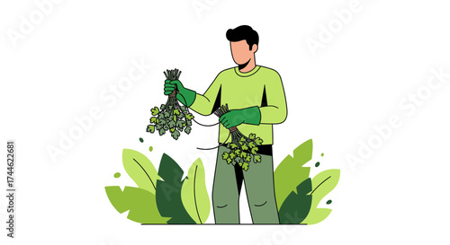 The harvesting of wine grapes. People work on a winery field. Hand draw vector illustration poster. Vineyard landscape with grape tree field and winery villa on background.