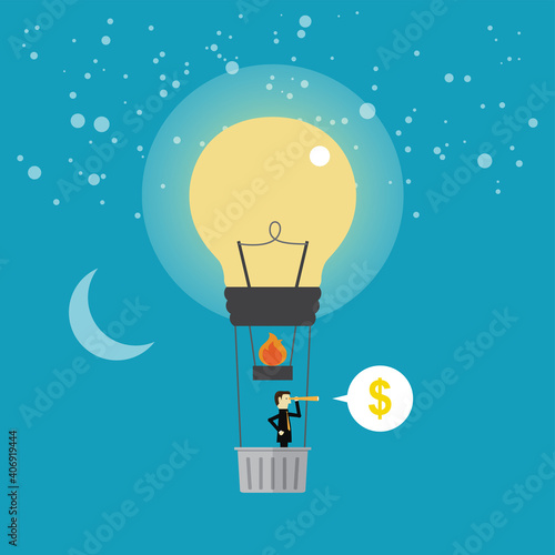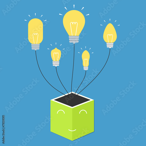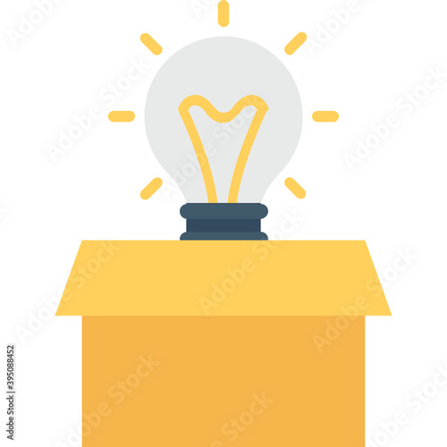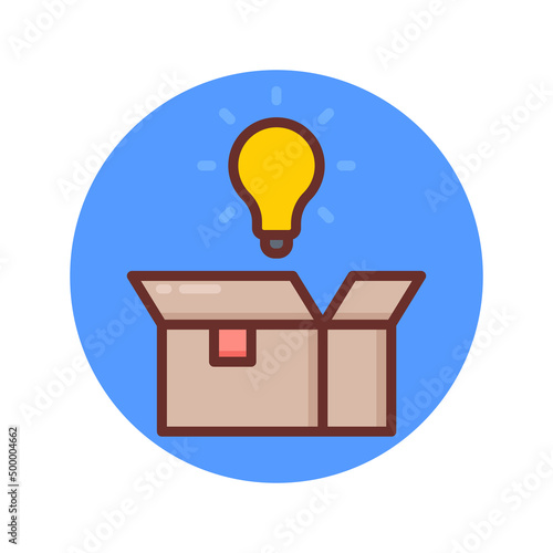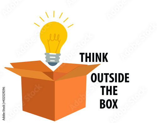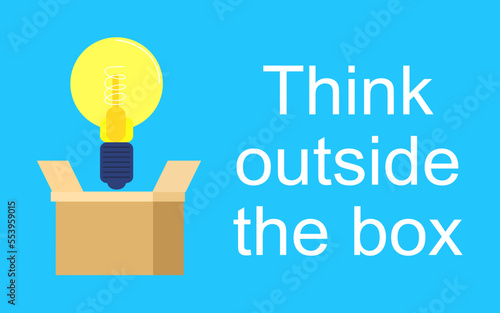 Thinking out of the box concept background. Lightbulb showing up from cardboard packing and symbolizing new creative idea. Vector illustration in flat style design.