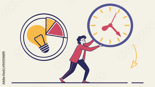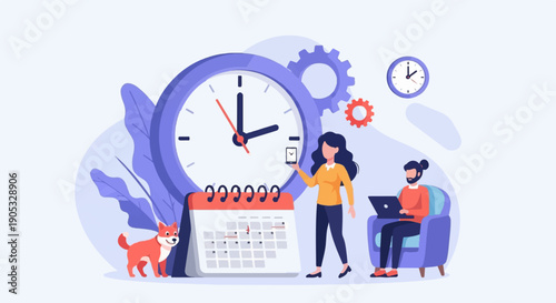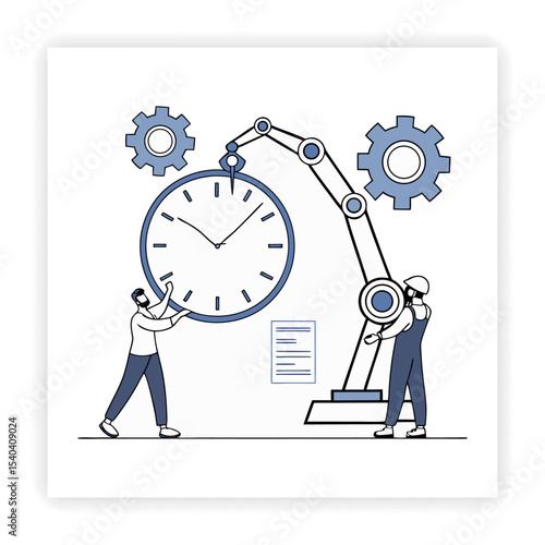 Time is up concept vector flat style design illustration. Tiny characters business people trying to turn back hands of huge clock. Time management concept for web banner, website page etc.