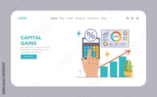 Time management landing page website template. Vector isometric laptop with clock, graphs and man planning his day in order to manage his time and achieve success.