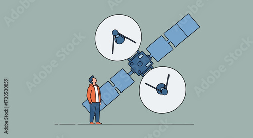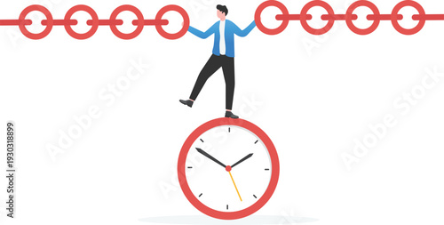 Businessman walking up stairway leading to the center of mechanical clock, vector illustration in paper art style. Time management concept for web banner, website page etc.