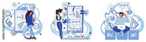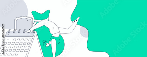 Tiny doctor dentist sitting on white tooth vector icon isolated on white background