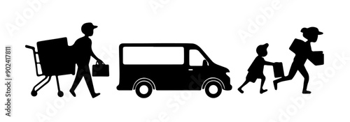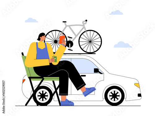 Tire change and car repair services. Mechanic, technician cartoon characters replacing winter tires, flat vector illustration. Tyre repair and maintenance. Car workshop.