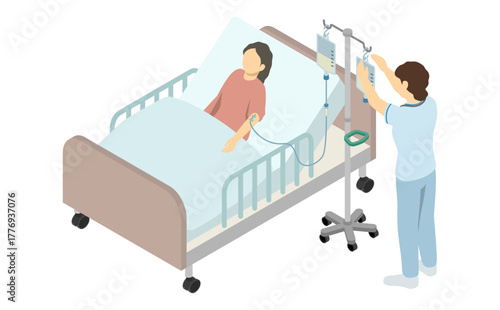 Tired nurse sleeping in hospital couch vector icon isolated on white background