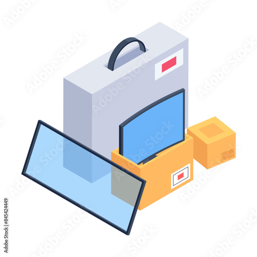 Tool box kit vector icon isolated on white background. Repair toolkit, carpentry hardware case, carpenter or contractor building equipment storage chest