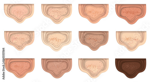 Tooth disorders set, flat vector illustration. Healthy and unhealthy teeth. Dental problems and diseases. Abscess, gingivitis, decay in enamel, decay in dentin, dead tooth, cyst, periodontal disease.