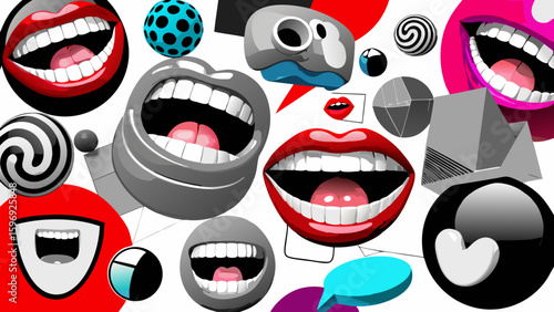 Tooth emoji maker, smiley creator. Vector set of emoticon body parts for your own creation of cool emoji with different facial expressions.