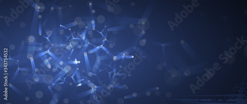 Vector polygonal art style hand touch gesture. Low poly wireframe mesh with scattered particles and light effects on dark blue background. Touch future concept poster banner design template.