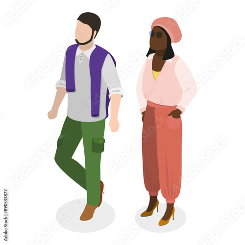 Tourist couple characters with travel map, planning route, vector flat isolated illustration. Summer traveling, vacation, tourism, adventure concept for web banner, website page etc.