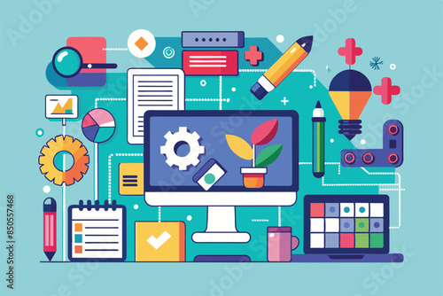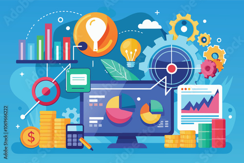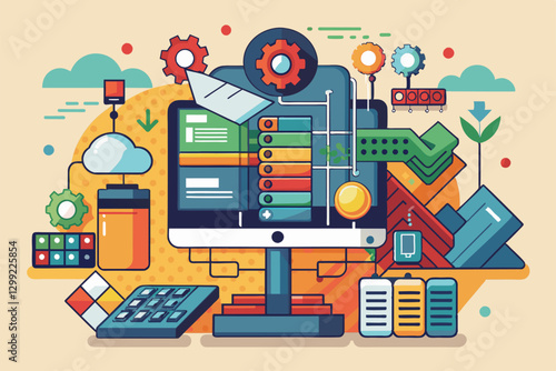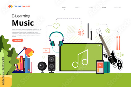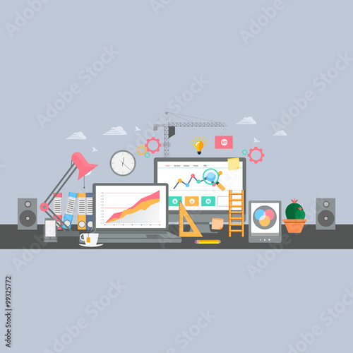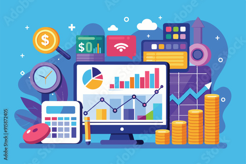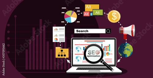 Delivery truck, huge laptop with globe, location pins, cardboard boxes on screen and micro characters, vector flat style design illustration. Online delivery tracking system.