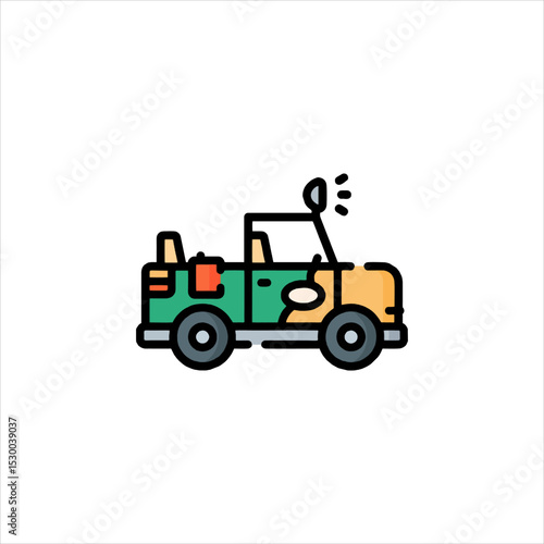 Tractor with pickled fruits and woman gardener vector icon isolated on white background.