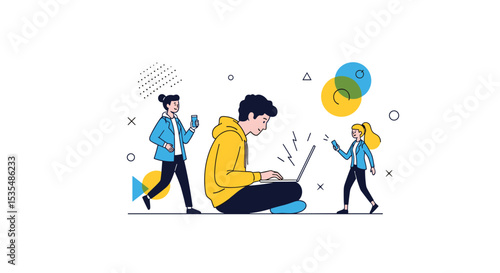 Traditional asian tea ceremony concept vector illustration. People drink hot tea from ceramic cups and teapot. Japanese and Chinese traditions.