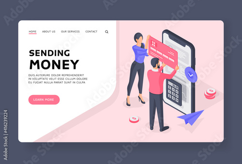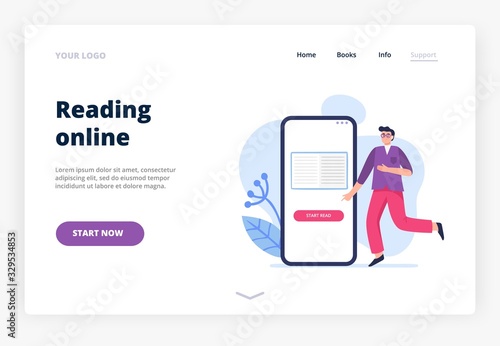 Train ticket vector website template, web page and landing page design for website and mobile site development. Traveler man buying, booking train ticket online using smartphone.