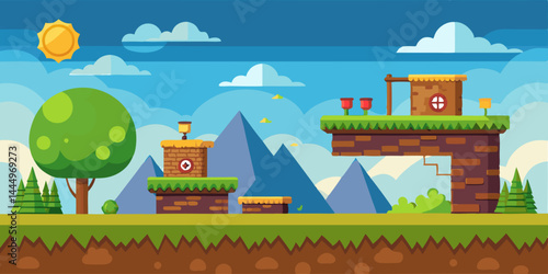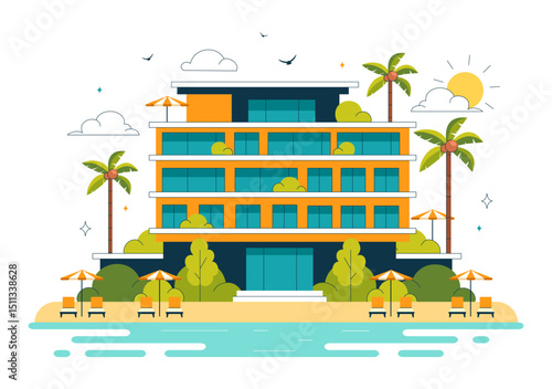 Vector set of outdoor workout interior posters, banners. Embankment cityscape with walkway, bicycle path, street food cart, icecream truck, benches and sports ground in the park. Flat style design.