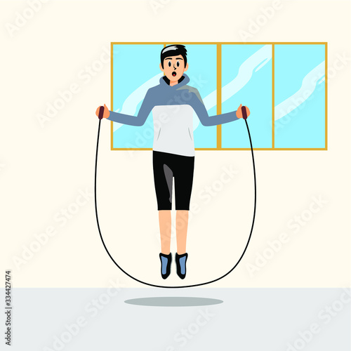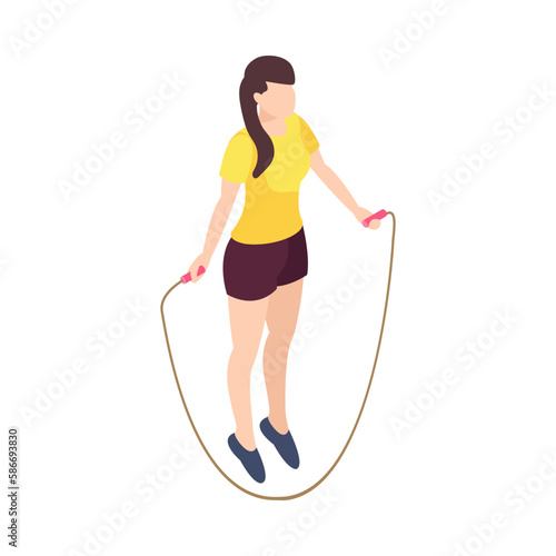 Vector illustration of girl training with jump rope. Training outside people concept flat style design element, icon isolated on white background.