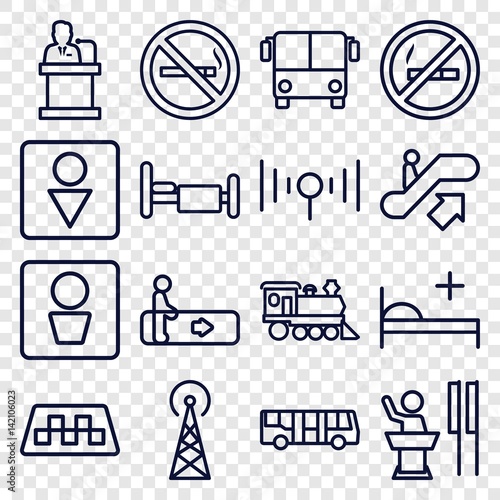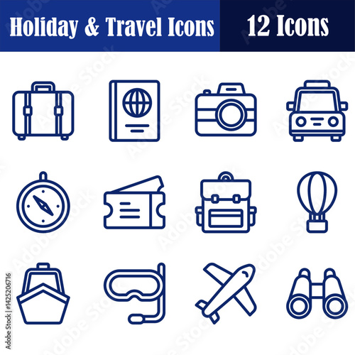 Travel and vacation line icons set. Vector illustration of holiday symbols and objects in flat style.