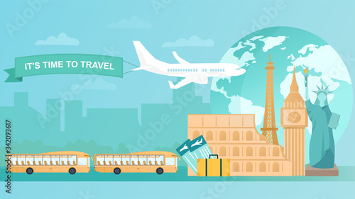 Travel and world tourism Infographic. Template with map, icons, tourists attractions, charts and elements for web design. Vector illustration.