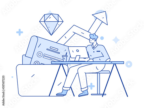 Happy woman packing huge suitcase for travel, vector flat style design illustration. Traveler packing luggage, preparing for summer holidays. Traveling, tourism, travel and vacation concept.