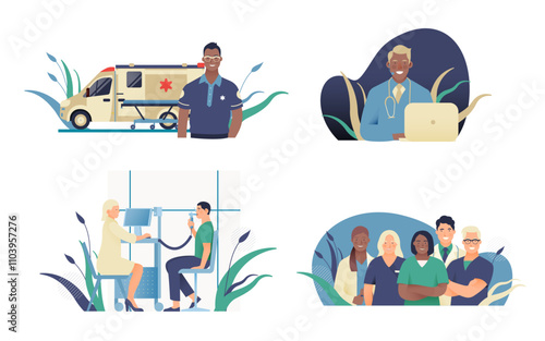 Travel people isolated vector scene. Adventure set. Man and woman tourist cartoon character visit foreign country illustration. Person at airport, shopping tour on vacation