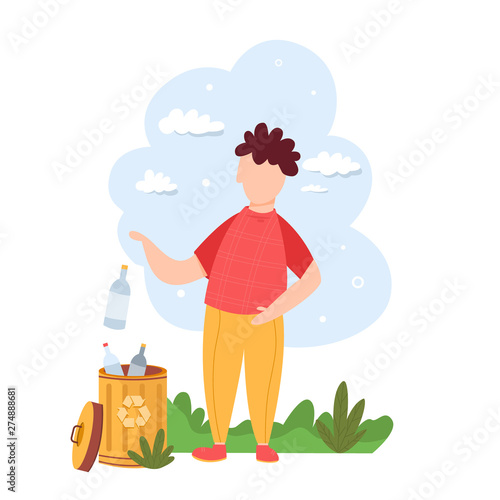Traveler needs of emergency help in camping vector illustration. Adventurer attacked by swarm of insects and wild aggressive wolves, suffering from allergy symptoms scene set