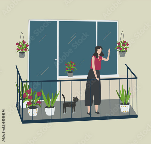 Treatment of pets in veterinary clinic concept vector illustration. Woman and her dog with injured neck. Vet clinic services concept design element in flat style.
