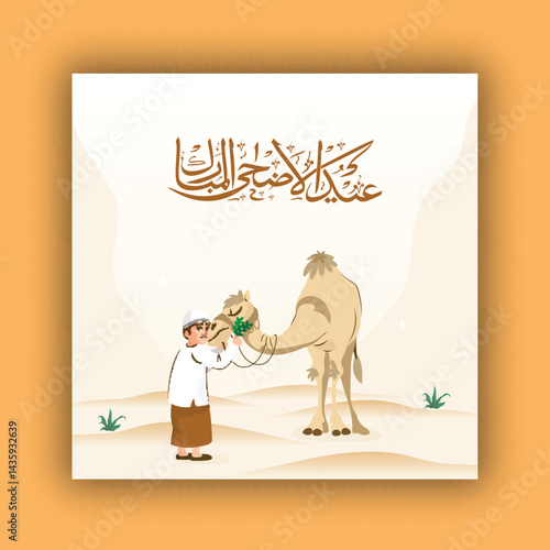 Vector illustration of arab bedouin wearing traditional clothing and camel. Trip to Egypt concept flat style design element.
