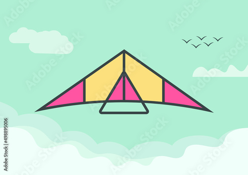 Vector illustration of egyptian pyramids and tourists young couple taking selfie with mobile and selfie stick monopod. Trip to Egypt concept flat style design element.