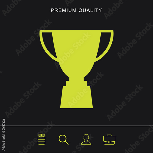 Trophy cup vector. Winner prize award icon. Champion gold sport goblet for first place isolated on white background