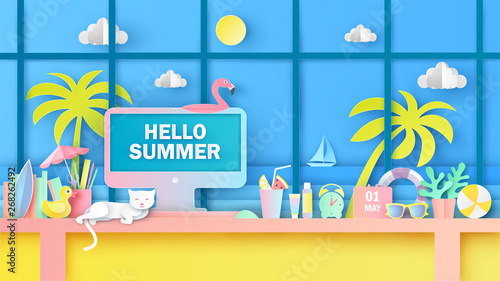 Tropical freshness wet wipes advertising poster design template, vector realistic illustration. Moistened cosmetic napkins for skin care in pack, coconut fruit, palm leaves background, copy space.