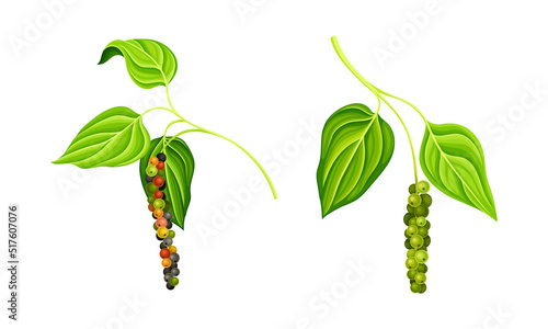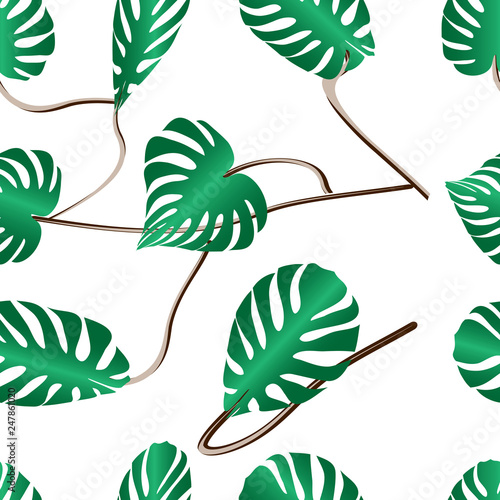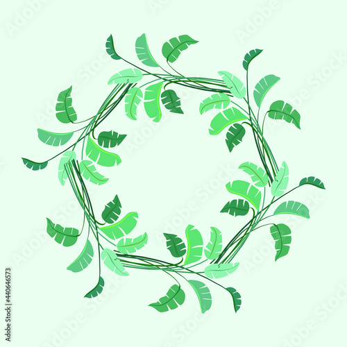 Tropical green plants leaves wreath vector icon isolated on white background.
