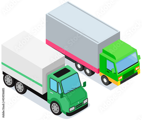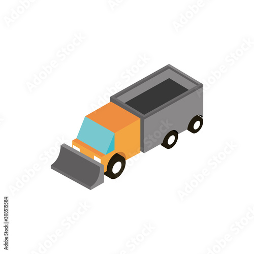 Truck for waste recycle vector. Isometric rubbish disposal car. Green city dumpster with garbage trash container vehicle isolated on white background