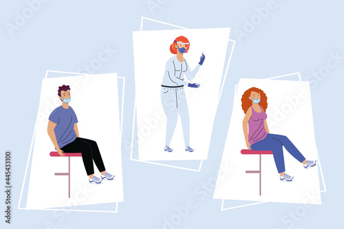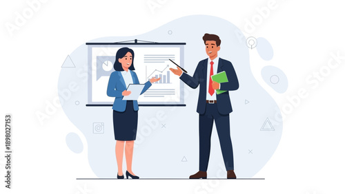Male and female doctors talking to each other, vector flat style design illustration. Discussion about medical diagnosis and treatment, medicine and healthcare concept for web banner, website page etc