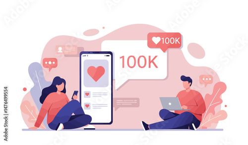 Two friends send messages to each other. People using messenger mobile phone apps. Vector web site design template. Landing page website concept illustration.