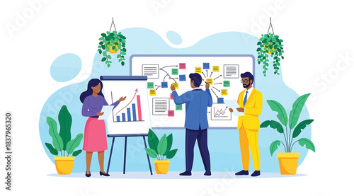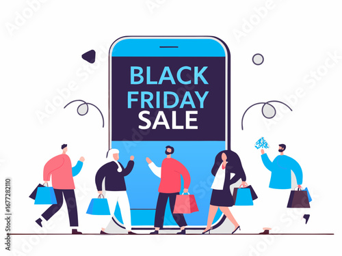 Two happy girls shopping together, flat vector illustration. Young women, best friends walking with bags full of purchases near fashion boutique, women clothing shop. Female friendship.