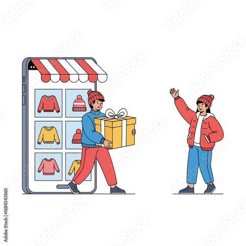 Two movers carrying closet, flat vector illustration. Relocation. Moving company service. Furniture delivery.