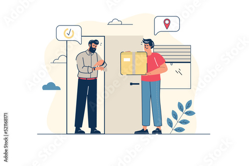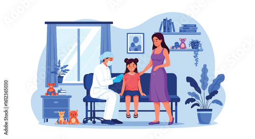 Science research laboratory scene. Two male characters, scientists in white coats discussing chemistry lab experiment report, flat vector illustration. Science lab interior with flasks beakers burner.