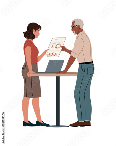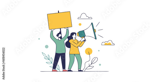 Two strong diverse girls with raised fist and female gender sign, flat vector illustration. Women Equality Day, women empowerment, girl power, feminism concept.