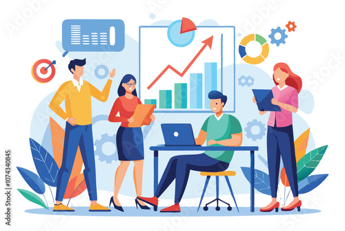 Unicorn horse coming out from smartphone and happy business people celebrating success, flat vector illustration. Unicorn company or startup, successful business.
