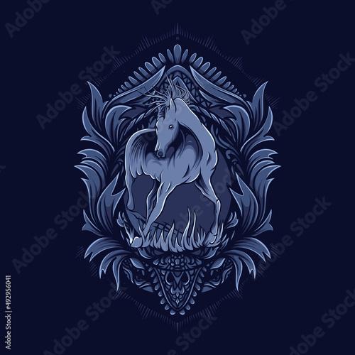 Unicorn, magical and mythical fairy tale character silhouette, vector illustration. Fairytale composition in paper art craft style.