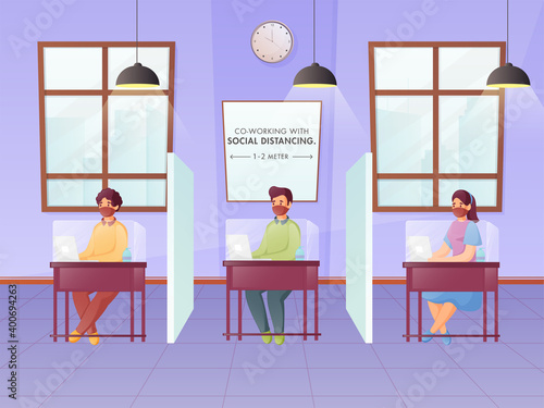 Vector illustration of students having lunch break. Canteen concept design element in flat style.