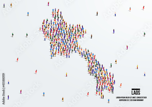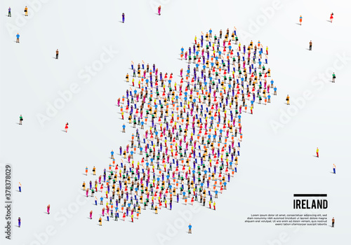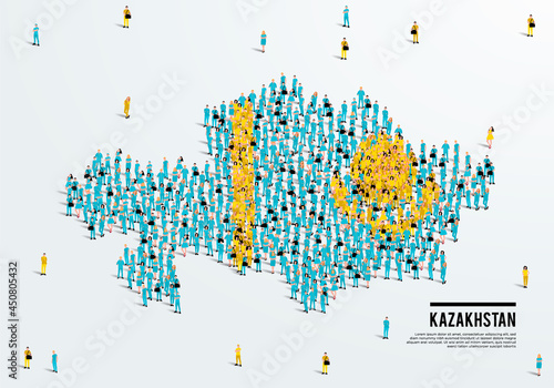 USA map made of many people, large crowd shape. Group of people stay in us country map formation. Immigration, election, multicultural diversity population concept. Vector isometric illustration.